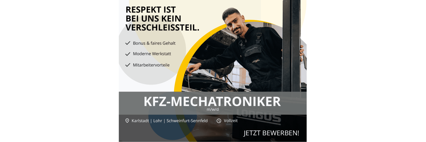 | Erfahrung | • Abgeschlossene Berufsausbildung als Kfz-Mechatroniker (m/w/d) |